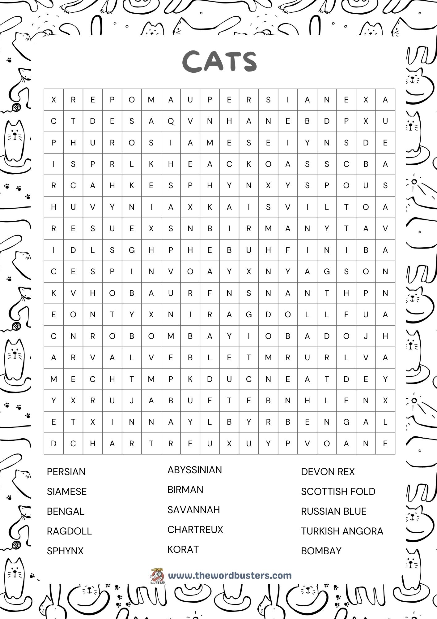 Meow! This cat breeds word search is a must-have for any feline fan. With 15 different types of cats hidden in the puzzle.. Perfect for use wherever you are at. For more content, explore the options we offer below.