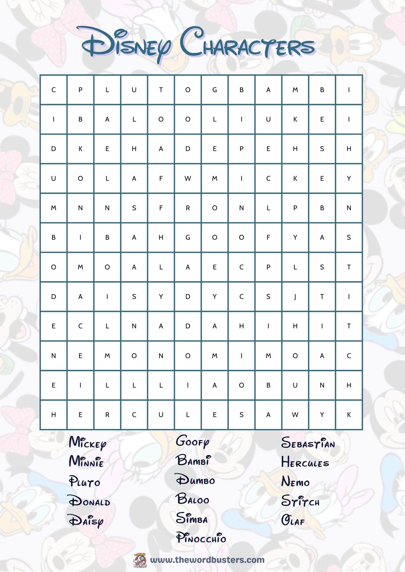 Enjoy this exciting Disney characters word search with names like Mickey, Simba, Dumbo, and Olaf. A perfect puzzle to entertain fans of all ages while celebrating beloved characters from the Disney universe. For more content explore the options we offer below.