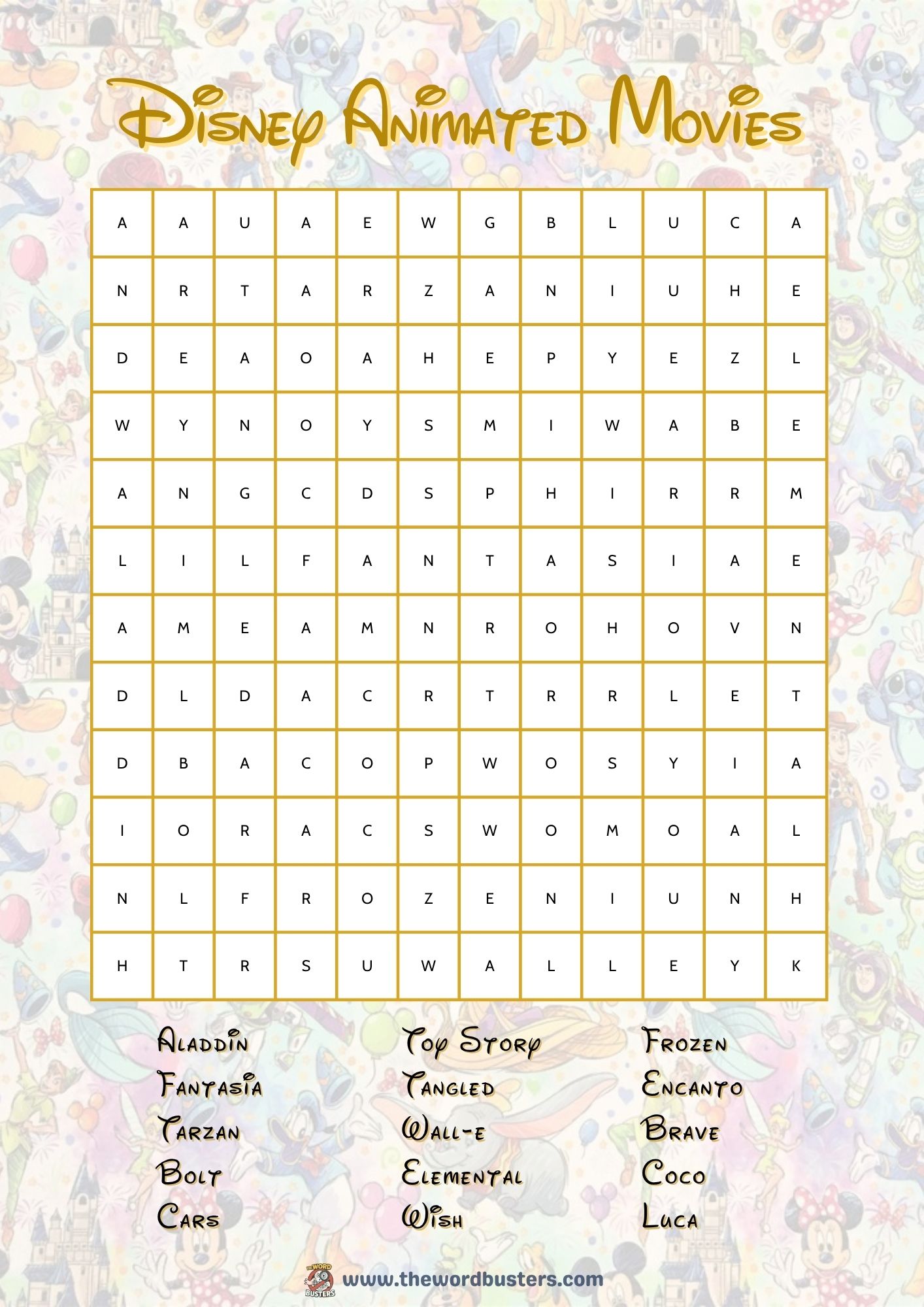 Dive into the magical world of Disney with this fun word search puzzle featuring classics movies. A perfect activity for kids and movie lovers to boost memory while celebrating iconic animated films. For more content explore the options we offer below.