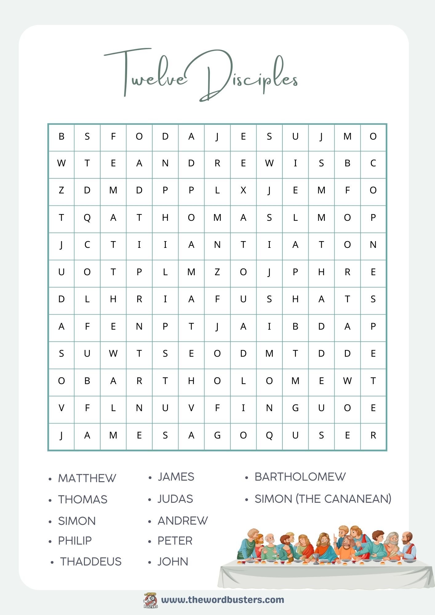 Twelve disciples word search printable