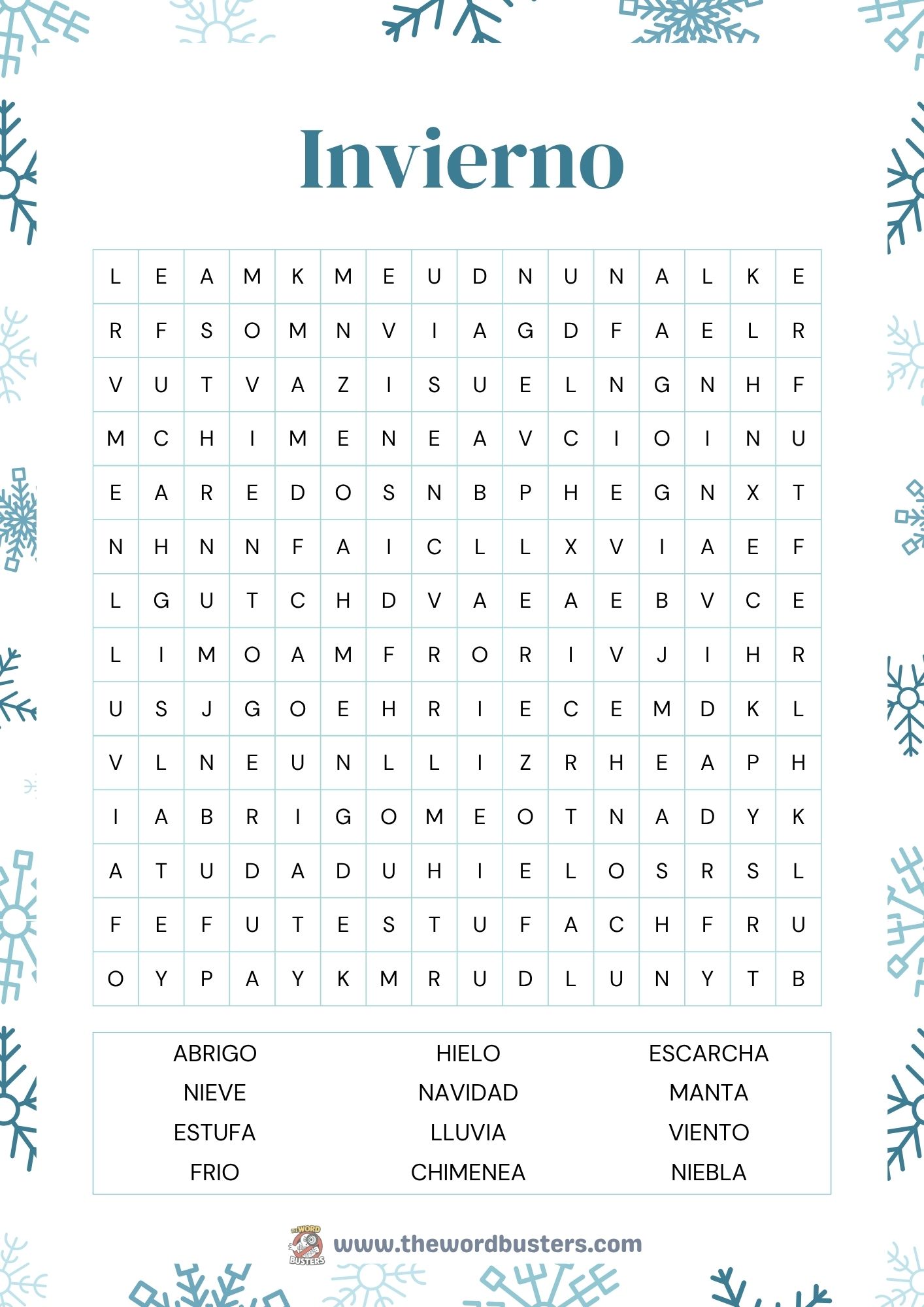 Explore the season of snow with this Spanish winter word search. Learn key terms like hielo, navidad, frío, and lluvia. Perfect for students and beginners!. For more content explore the options we offer below.