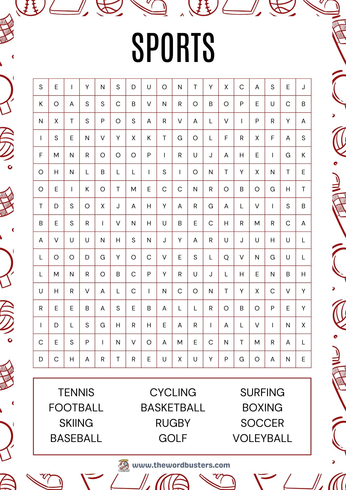 Explore more printable sports word searches